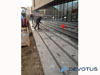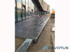 Het natuursteen is door onze opdrachtgever geheel op maat vervaardigd, de helling loopt dan ook perfect over in de treden. Onze medewerkers hebben dit precieze werk nauwkeurig uitgevoerd. Met de inzet van kleine en grote machines met vacuümzuigers hebben ze de grote elementen geplaatst op een opbouw van betonpuin en splitbeton.